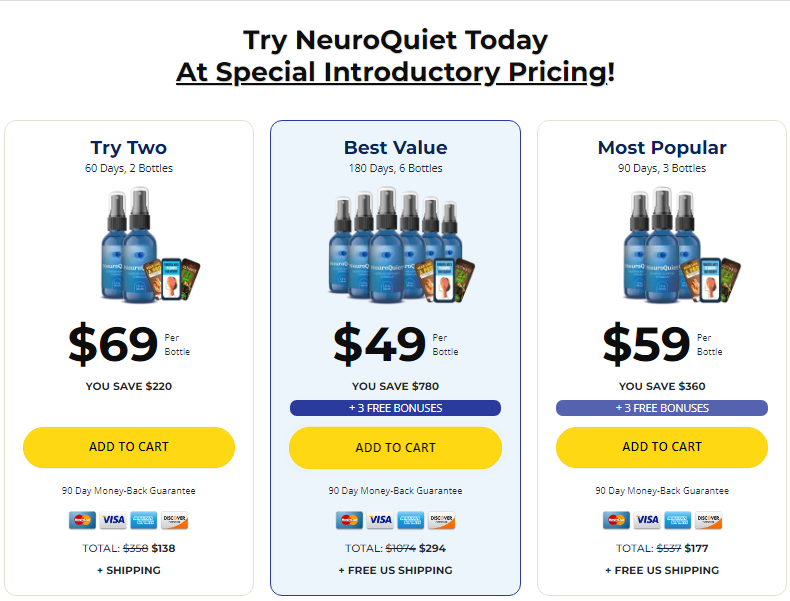 According to the official website, NeuroQuiet offers three main packages: