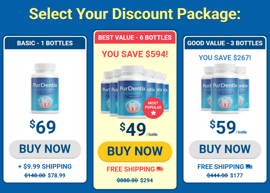 In this pricing breakdown, we’ll explore PurDentix packages, cost per bottle, available discounts, refund policies, and overall value to help you determine whether it’s a smart purchase for long-term oral health support.