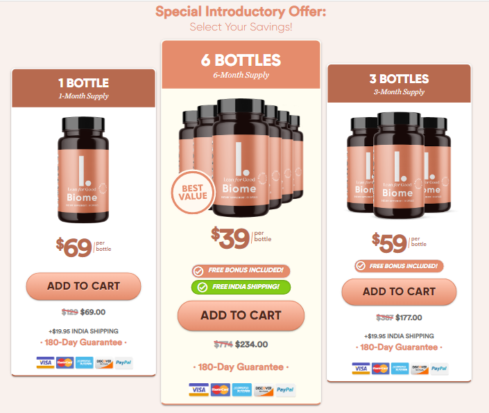LeanBiome is available in three package options: